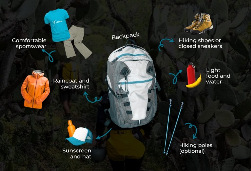 Climbo provides the essentials, but a small backpack with a few extras makes the day smoother: